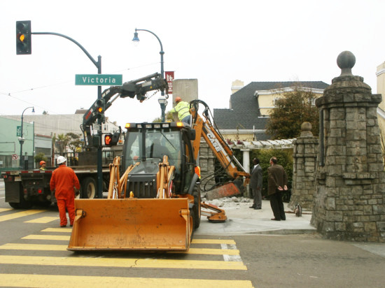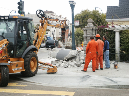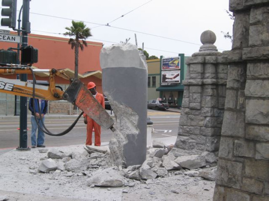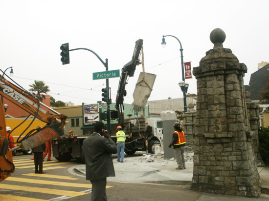 The 1979 concrete pylon was an unwelcome addition to our historic, 1912 stone columns.But no longer, thanks to the efforts of the SFDPW, Supervisor Elsbernd, and many of our members.